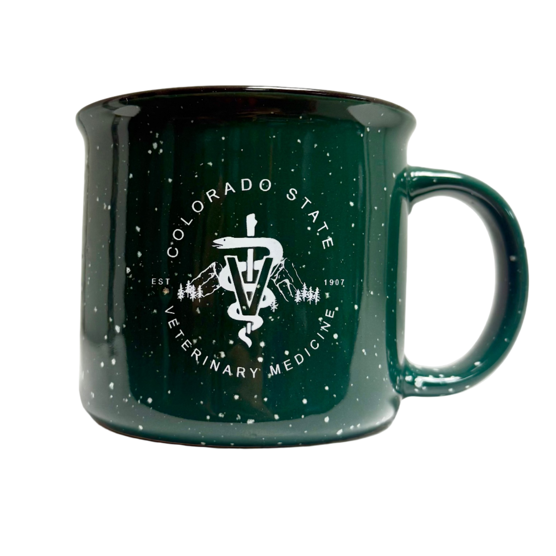 Remember the good ol' days when you were little and someone would just give you hot chocolate on a cold camping night in a retro campfire mug? Well relive those moments with this Colorado State Veterinary Medicine Campfire mug!